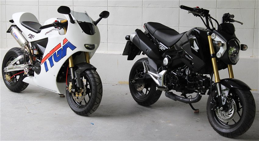 | A MRX with the fairing kit next to a standard MSX. |